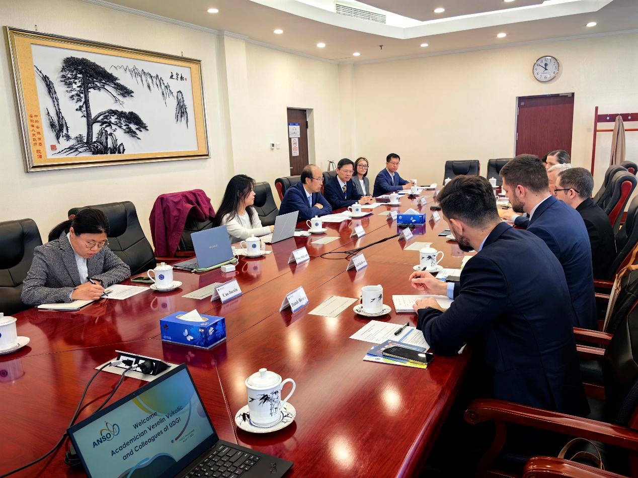 Beijing, 1 April 2025 – Prof. Liu Weidong, Executive Director of ANSO, and Director General of the Bureau of International Cooperation, Chinese Academy of Sciences (CAS), welcomed a delegation led by Academician Prof. Veselin Vukotić, Founder and Rector of the University of Donja Gorica (UDG), a member organization of ANSO in Montenegro, at the headquarters of CAS in Beijing. Staff from the Secretariat of ANSO and representatives from the Bureau of International Cooperation, CAS joined the meeting. The meeting explored opportunities to further enhance the partnership between ANSO and UDG.
