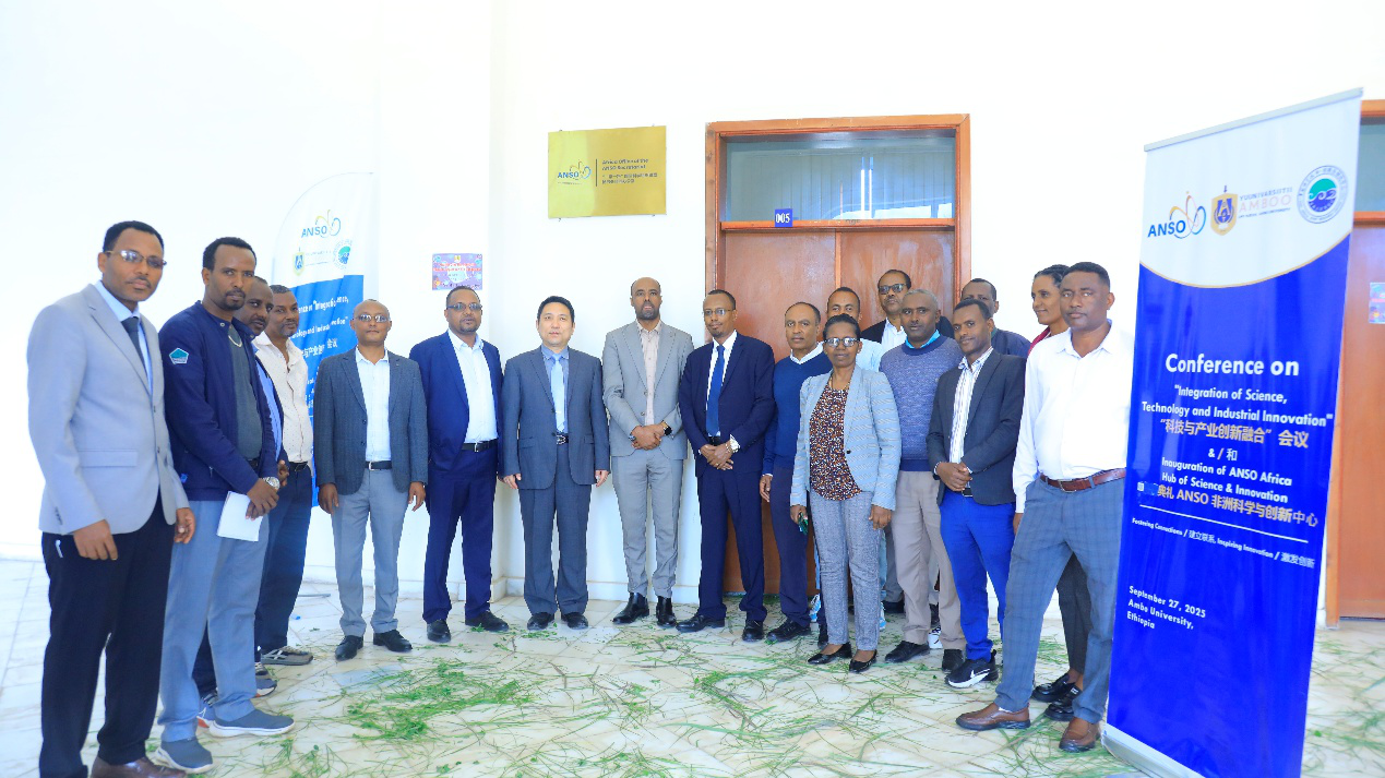 On September 29, 2025, the Africa Office of the ANSO Secretariat was officially inaugurated at Ambo University (AU) in Ethiopia. The ceremony was attended by Dr. Yi Zhijun, Deputy Executive Director of the ANSO Secretariat; Dr. Bayisa Leta Danno, President of AU; Dr. Niguse Bekele, Dean of the College of Agriculture and Veterinary Science at AU; along with several other university leaders.