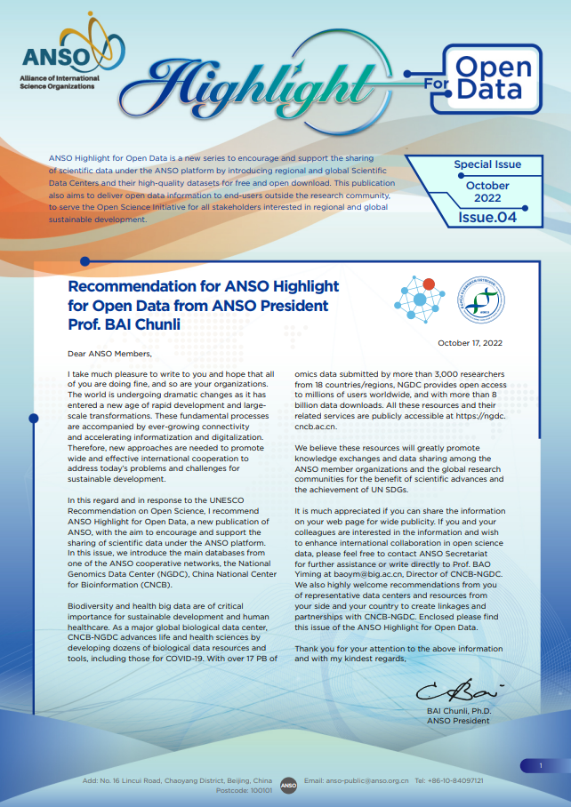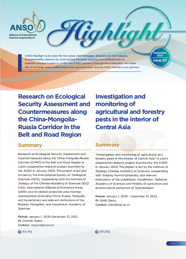 ANSO Highlight is to share the new ideas, methodologies, datasets, and technologies of sustainability research by summarizing the latest progress and achievements of scientific projects funded by ANSO and ANSO partners. Through this publication, we would like to stimulate active collaboration and communication among ANSO members and partners.