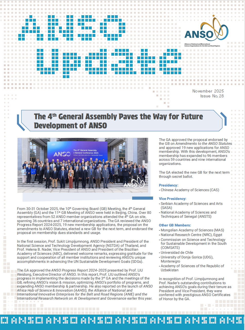 The ANSO Update is a compilation of the various activities of the ANSO over a period of time.