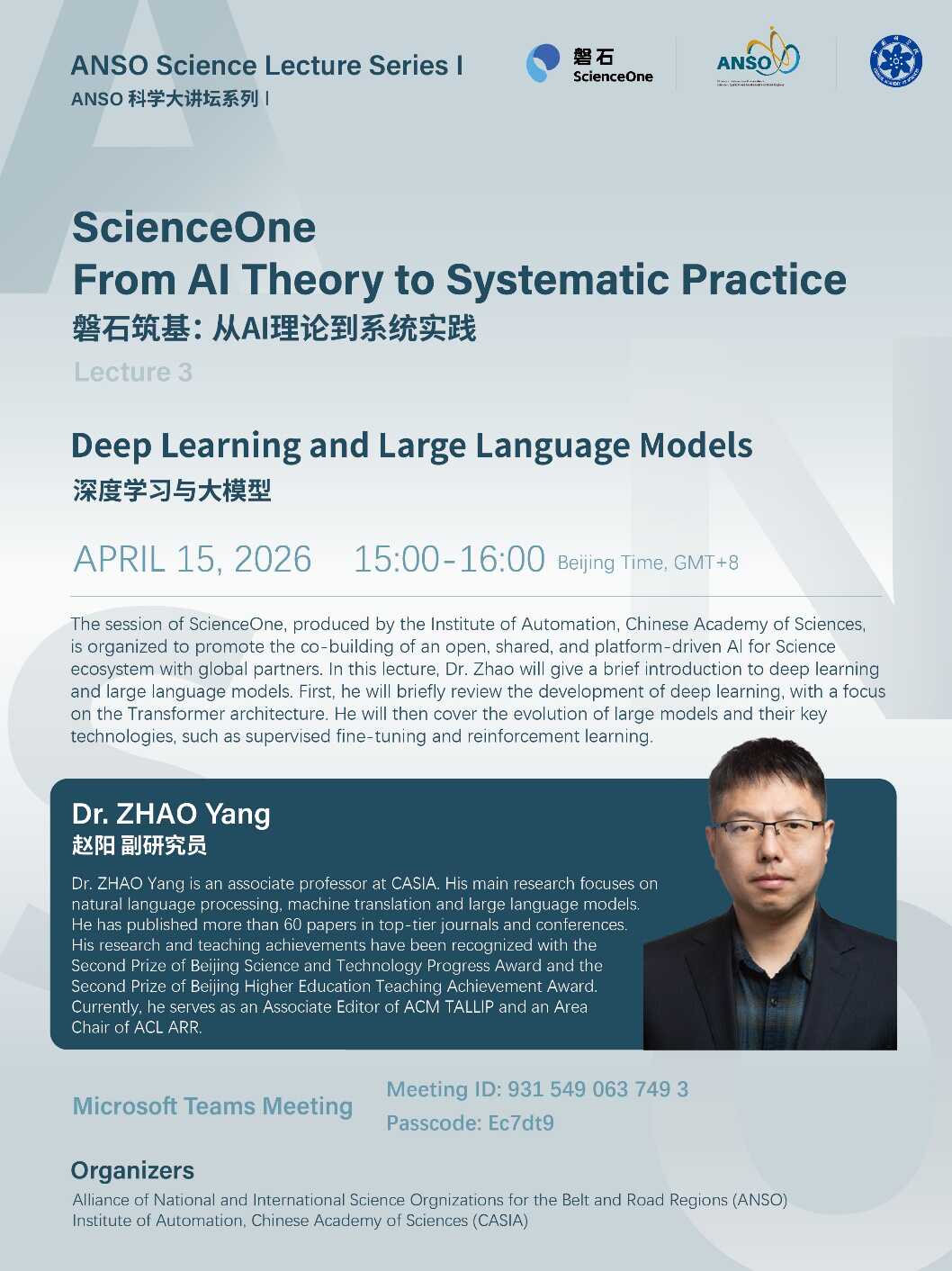 Deep Learning and Large Language Models is the third lecture of ScienceOne.