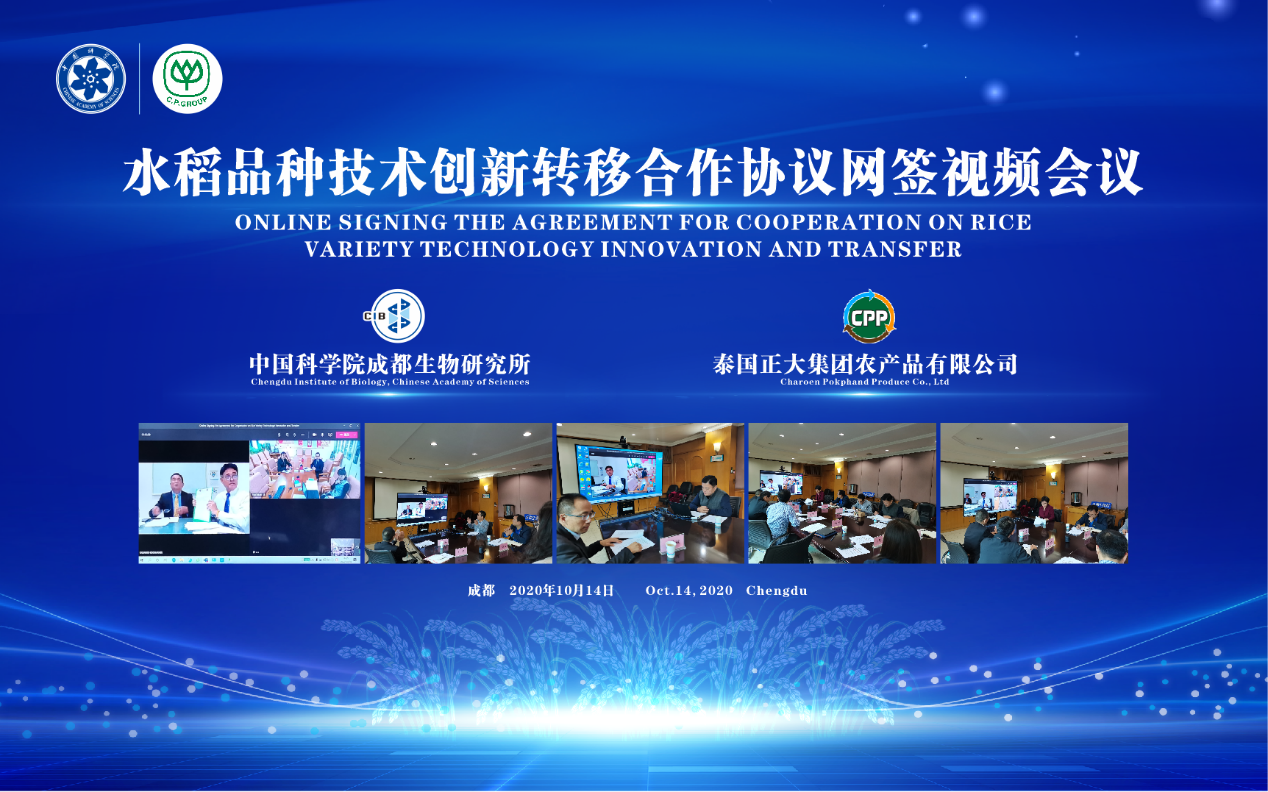 中国科学院成都生物研究所与泰国正大集团正大农产品有限公司 在线签署《水稻品种技术创新转移合作协议》