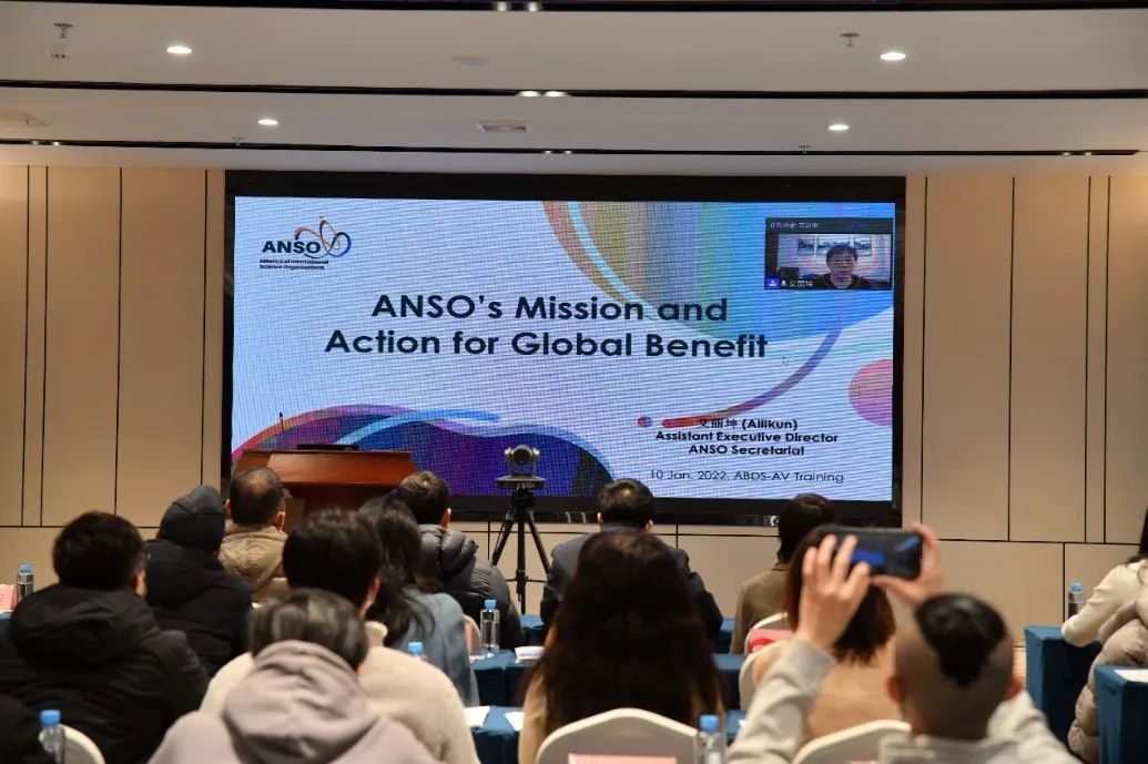 艾丽坤研究员在线上致辞环节详细介绍了ANSO的定位与使命、战略与行动目标、联合部署项目以及学员参与ANSO活动的途径,并预祝培训班圆满成功。她表示,ANSO希望各国科学界携手并肩,共同努力,发挥好“一带一路”国际科学组织联盟的平台作用,为推动构建人类科技命运共同体做出重要贡献。