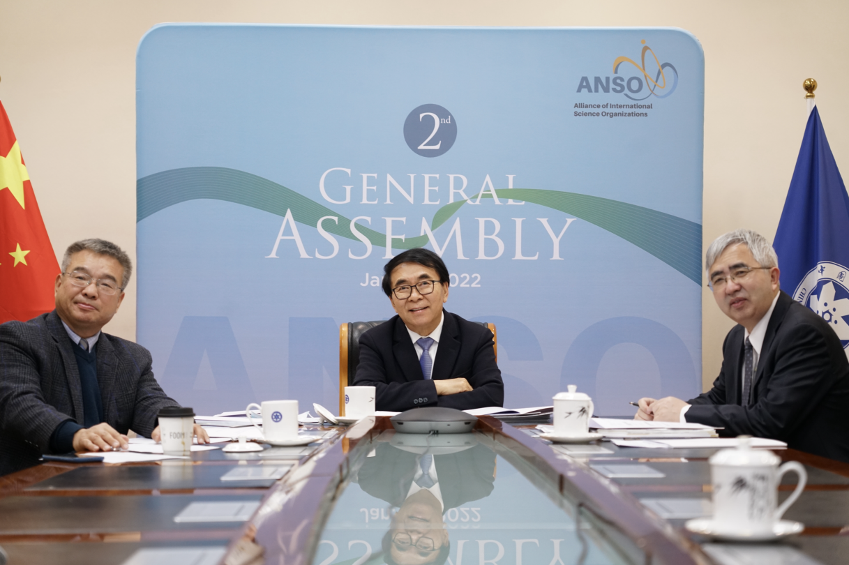 1月20日,ANSO全体大会(GA)以线上形式召开,37家ANSO创始成员中的32家机构领导和代表参加了会议。因此会是在特殊条件下以特殊形式召开,ANSO也称其为ANSO特别全体大会。会议议程主要涉及审议ANSO成立三年来的工作;审议并批准对ANSO章程的修改;审议并批准自2018年底该组织成立以来申请加入的新成员;审议讨论该组织未来发展战略思路,以及审议并完成ANSO理事会的换届工作。会议由ANSO副主席M. Qasim Jan主持,ANSO主席白春礼致开幕词和闭幕词,并作ANSO未来战略思考的报告。中国科学院国际合作局局长陈熙霖、ANSO秘书处执行主任曹京华等线下参会。