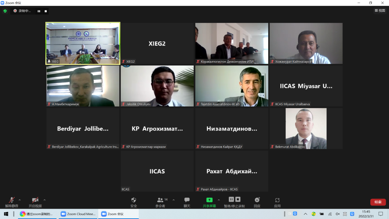 3月31日,针对咸海区域日益严重的生态问题,应乌兹别克斯坦总统直属咸海创新国际中心建设“咸海环境创新和技术区”的技术需求,ANSO绿色咸海国际科学倡议项目办公室(ANSO IPO)举办了“乌兹别克斯坦盐生植物种植与高效节水技术应用培训班”。乌兹别克斯坦总统直属咸海创新国际中心主任Kamalatdin Idirisov和中国科学院新疆生态与地理研究所所长张元明出席并致辞。来自乌兹别克斯坦相关单位科研人员和管理人员等30余人以线上的方式参加此次培训班。