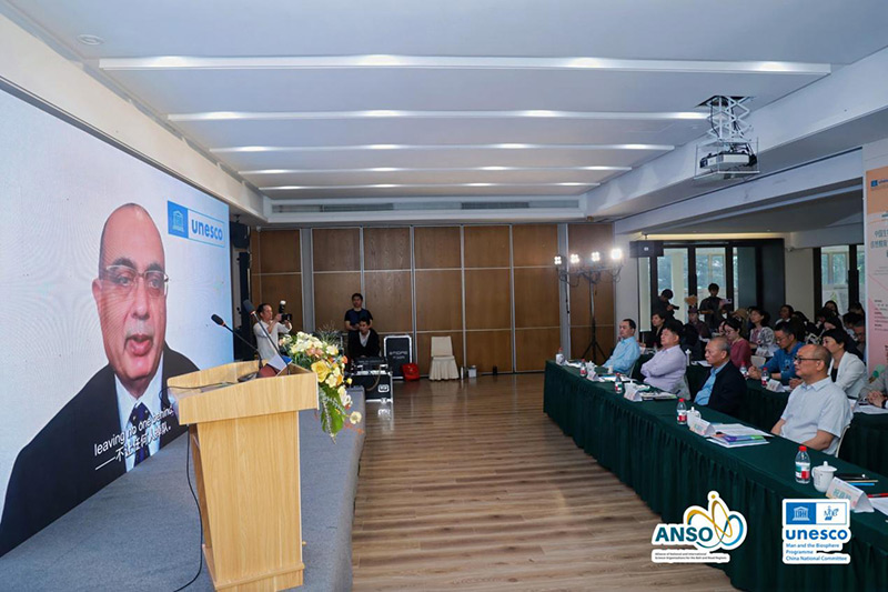 联合国教科文组织东亚地区办事处主任夏泽翰(Shahbaz Khan)做视频致辞,衷心祝贺ANSO和中国MAB联合申报的UNESCO参与计划项目获批。他表示,该项目与联合国可持续发展目标和UNESCO全球使命高度契合,UNESCO东亚地区办事处愿与ANSO和中国MAB共同推动自然教育、提升女性领导力,构建一个共享公平且具有韧性的地球家园。