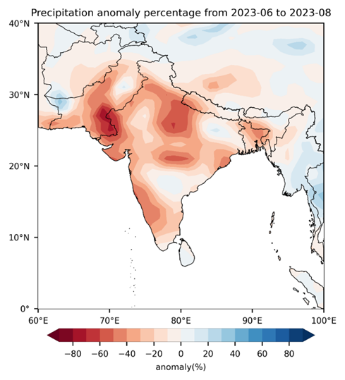 Figure 3. The precipitation anomaly percentage (%) of South Asia predicted by ANSO-MISSPAD for Summer 2023